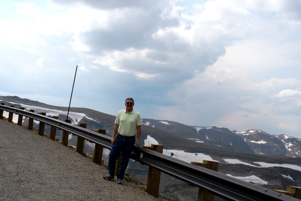 Wow, can we see a long ways up here. There are no trees, shrubs, or anything else up here on the summit. This is classic tundra and we were very happy to have plenty of gas in the tank. Rick is in his short sleeve shirt, but was happy to get back in the car with the heated seats on!